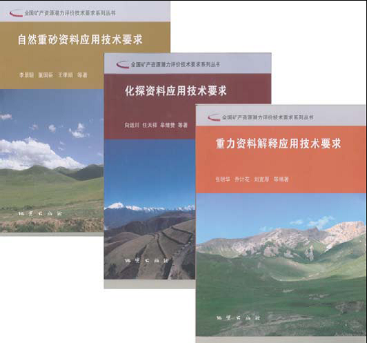 (1)以相关矿产预测为目标,针对各专业的数据特点,编著出版了《重力资料解释应用技术要求》、《化探资料应用技术要求》、《自然重砂资料应用技术要求》。根据全国矿产资源潜力评价需要,以找矿理论为基础,针对各专业在找矿中的作用和资料的特点,全面阐述了矿产资源评价中重力、化探和自然重砂资料应用的工作方法、采用的主要技术及工作程序,包括数据的整理、预处理、重砂矿物及其组合矿物的选取、数据处理、专题图件编制和异常解释方法,明确了化探和重砂单矿物异常图、组合矿物异常图和综合异常图的编图方法和步骤等。为应用重力、化探和自然重砂资料开展全国矿产资源潜力评价工作奠定了技术方法基础。