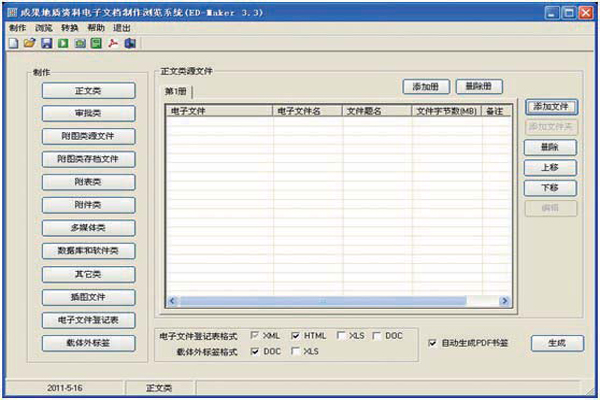为加强地质资料电子文档的管理,2006年国土资源部发布实施了《成果地质资料电子文件汇交格式要求》(国土资发〔2006〕210号文),该标准规定了地质资料电子文件的格式和在保存介质中的组织方式,适用于非油气类成果地质资料正文(含插图、插照、插表)、附图、附表、附件等电子文件的制作、检查验收和汇交,从而为提供高效、快捷的资料社会化服务打下了坚实的基础。在国土资源部的领导下,全国馆组织开发了一套与标准配套的“电子文档制作与浏览系统”工具软件,目的是帮助用户形成符合标准的适用于汇交和使用的成果地质资料电子文档。该系统研发的意义在于配合标准进行电子文件的自动化制作和浏览,对两大功能都进行了全新的设计和优化,提升了资料工作的自动化程度,降低了由手工操作引起的错误率,减轻了工作量,提高了工作效率。