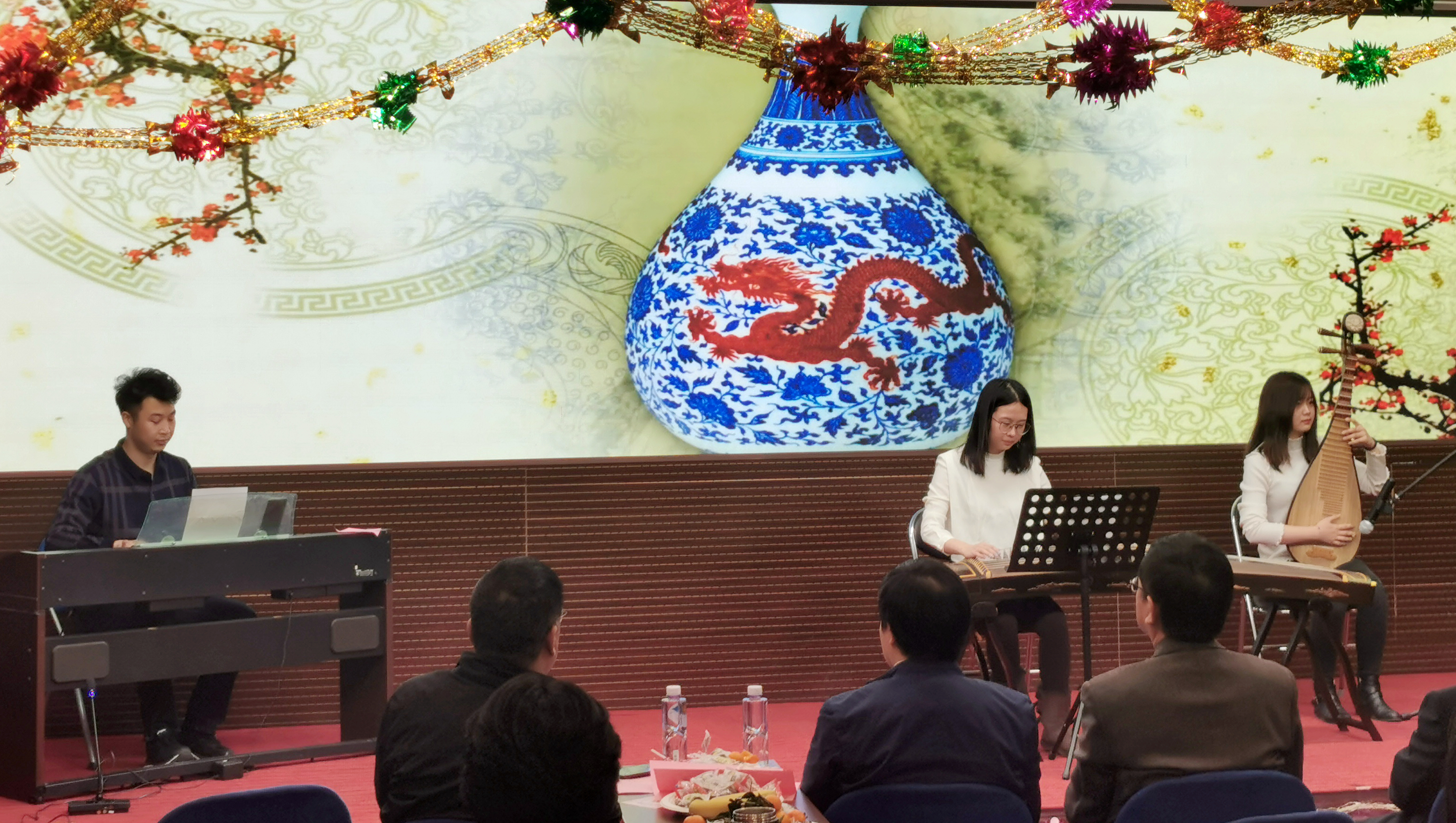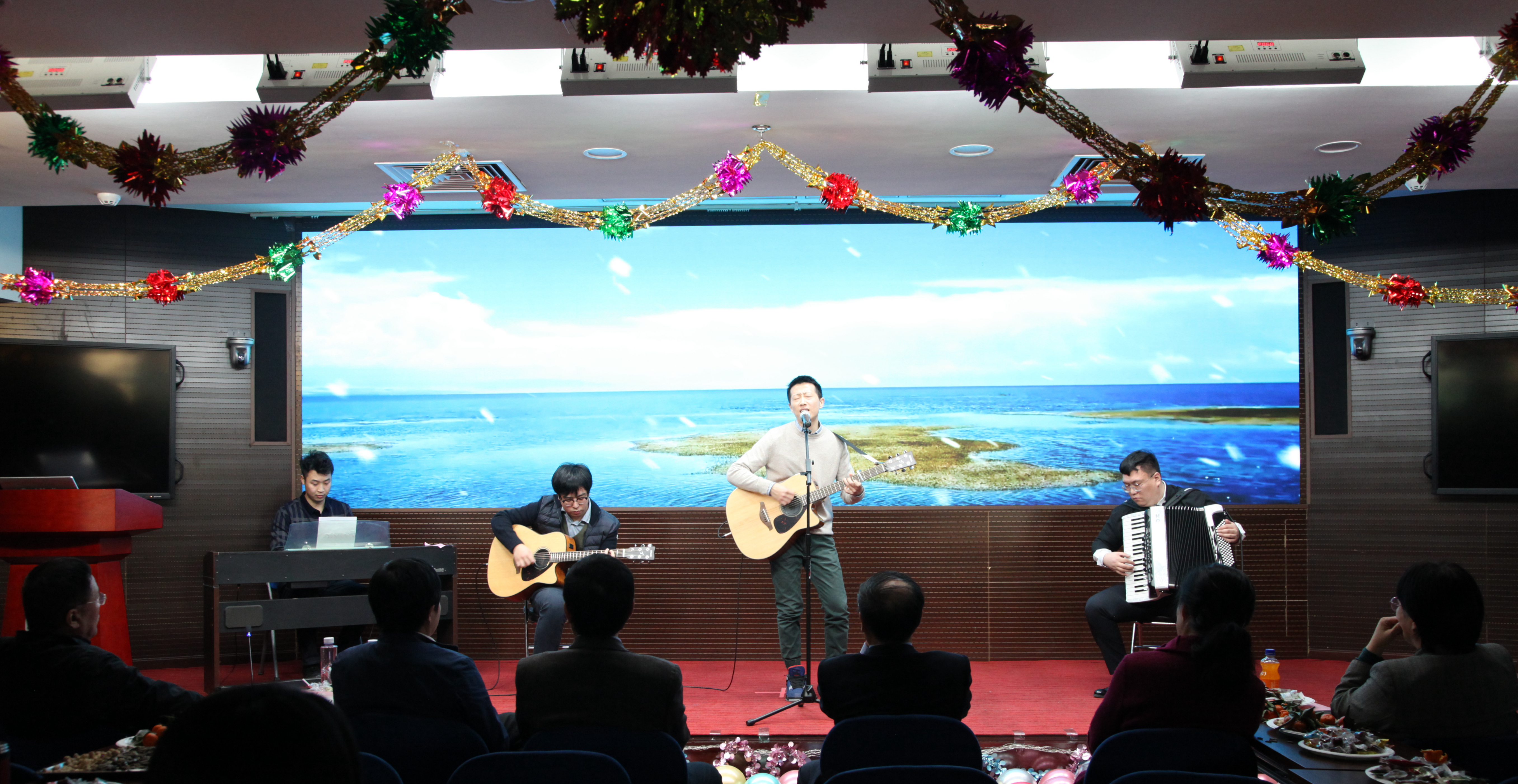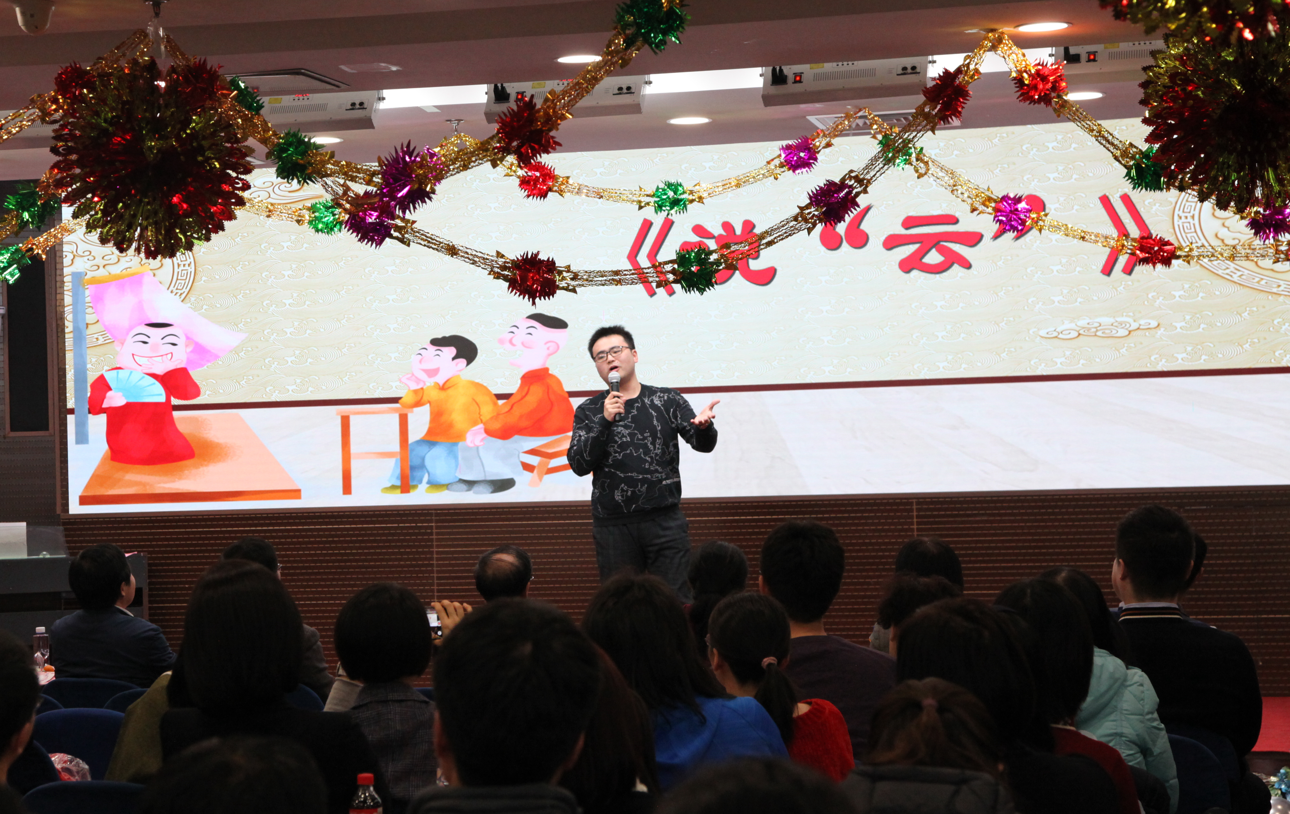 团拜会在2019年新入职职工的集体亮相和歌舞串烧中拉开帷幕,随后,中心职工相继表演了小合唱《我们都是追梦人》、乐器合奏《青花瓷》、脱口秀《说“云”》、乐队表演《贝加尔湖》、舞蹈《芒种》和诗乐表演《不忘初心砥砺前行》等丰富多彩的节目。期间,还穿插了本命年游戏《老鼠爱大米》、“你来比划我来猜”、“电动小马达”等互动游戏,进一步活跃气氛,增添乐趣。