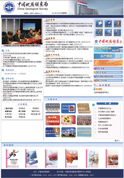 “交通安全”、“政务信息”、“领导活动”、“领导专页”、“地调动态”、“科学发展观”、“找矿大讨论”、“学习园地”等专栏,实现了地调管理工作信息的实时发布。